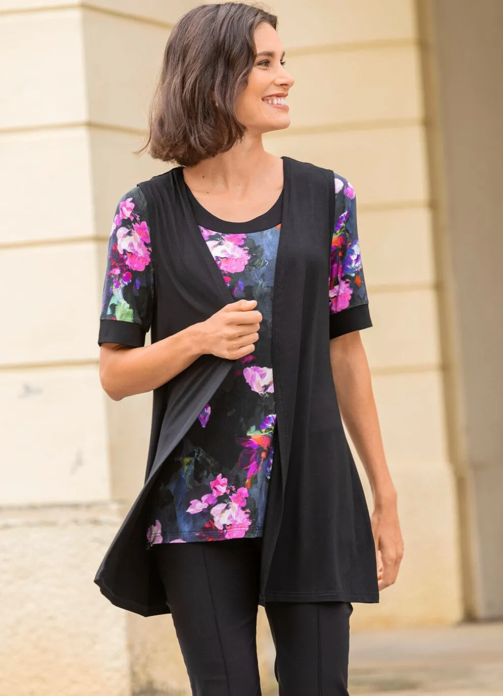 2-teiliges Set bestehend aus einer schwarzen Weste in legerer, verschlussloser Form.