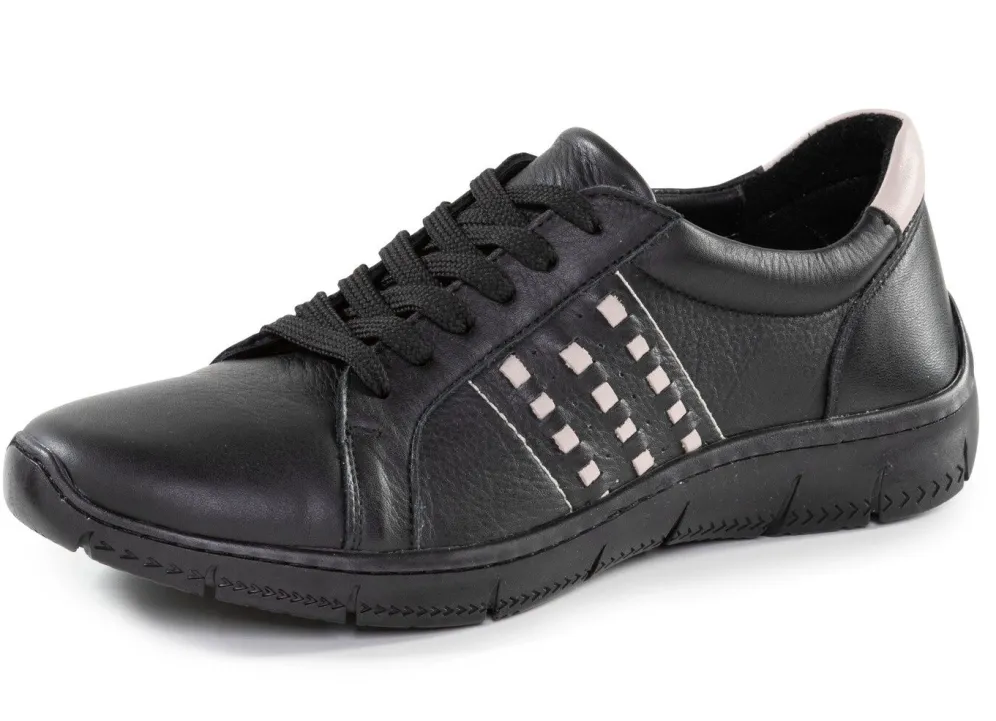 Schnürschuh aus Nappaleder, mit Kontrastdurchzügen: Weite G, Lederfutter, herausnehmbares Lederfußbett, leichte PU-Profilsohle, 15 mm Keilabsatz