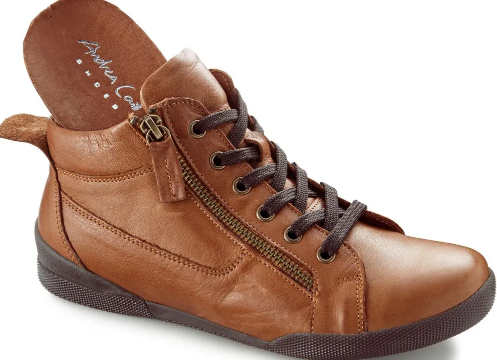 Boots aus weichem Rind-Nappaleder mit Schnürung: Seitenreißverschluss, Lederfutter, herausnehmbares Lederfußbett, leichte TPR-Riffelsohle sowie 10 mm Keilabsatz. Schafthöhe ca. 8 cm
