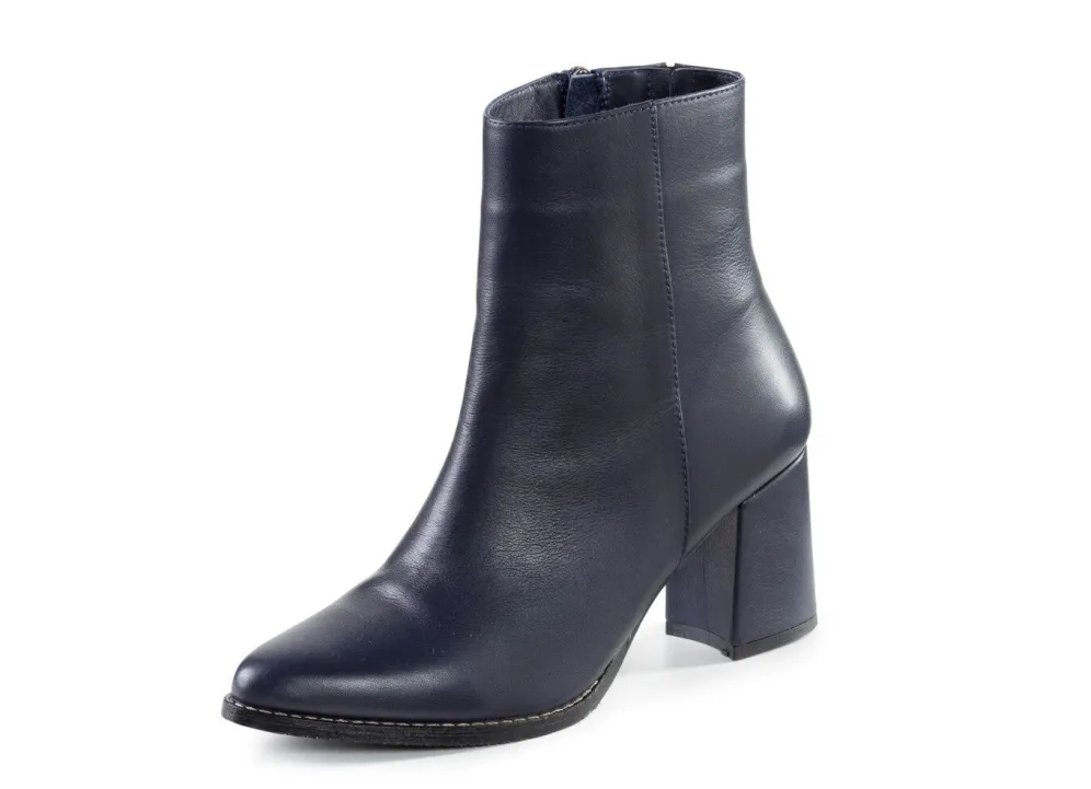 Elegante Stiefelette aus Nappaleder mit seitlich eingesetztem Gummizug: Innenreißverschluss, Textilfutter, Lederdecksohle, leichte TR-Riffelsohle sowie lederbezogener 65 mm Absatz. Schafthöhe ca. 17 cm