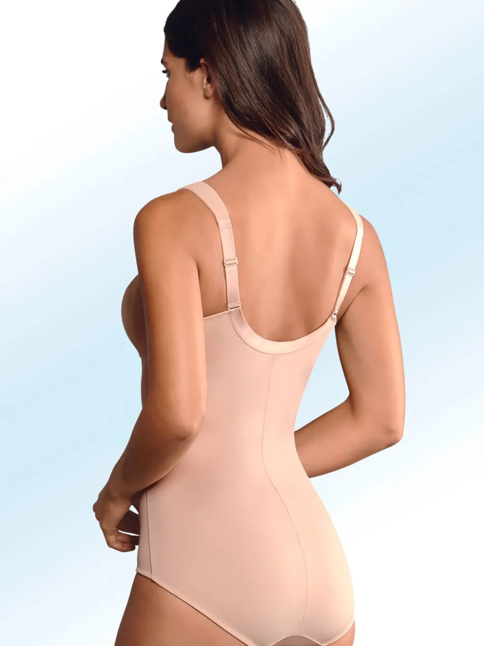 „Anita“-Entlastungs-Hosenkorselett mit unterlegter Elastikspitze in den Obercups, Verstärkung im Vorderteil, seitlicher Cupverstärkung, im Schulterbereich weich gepolsterten, verstellbaren Stretchträgern sowie Hakenverschluss und Baumwolleinlage im Schritt.