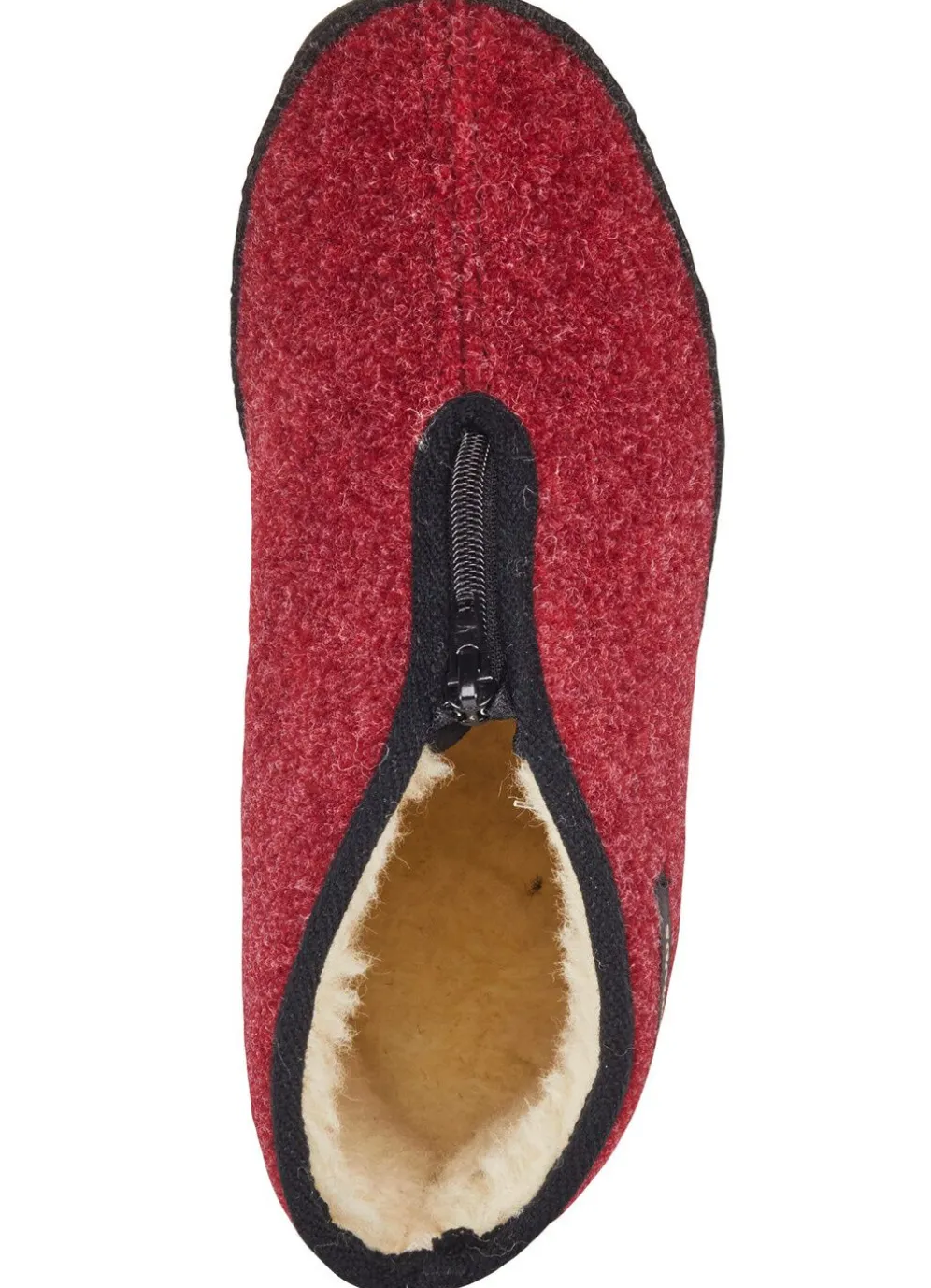Atmungsaktive Hausschuhe aus Textil mit Reißverschluss: Warmfutter und Fußbettbezug aus 100% Schurwolle, Fersenluftpolster, Filzschalensohle, TR-Laufsohle sowie 25 mm Keilabsatz