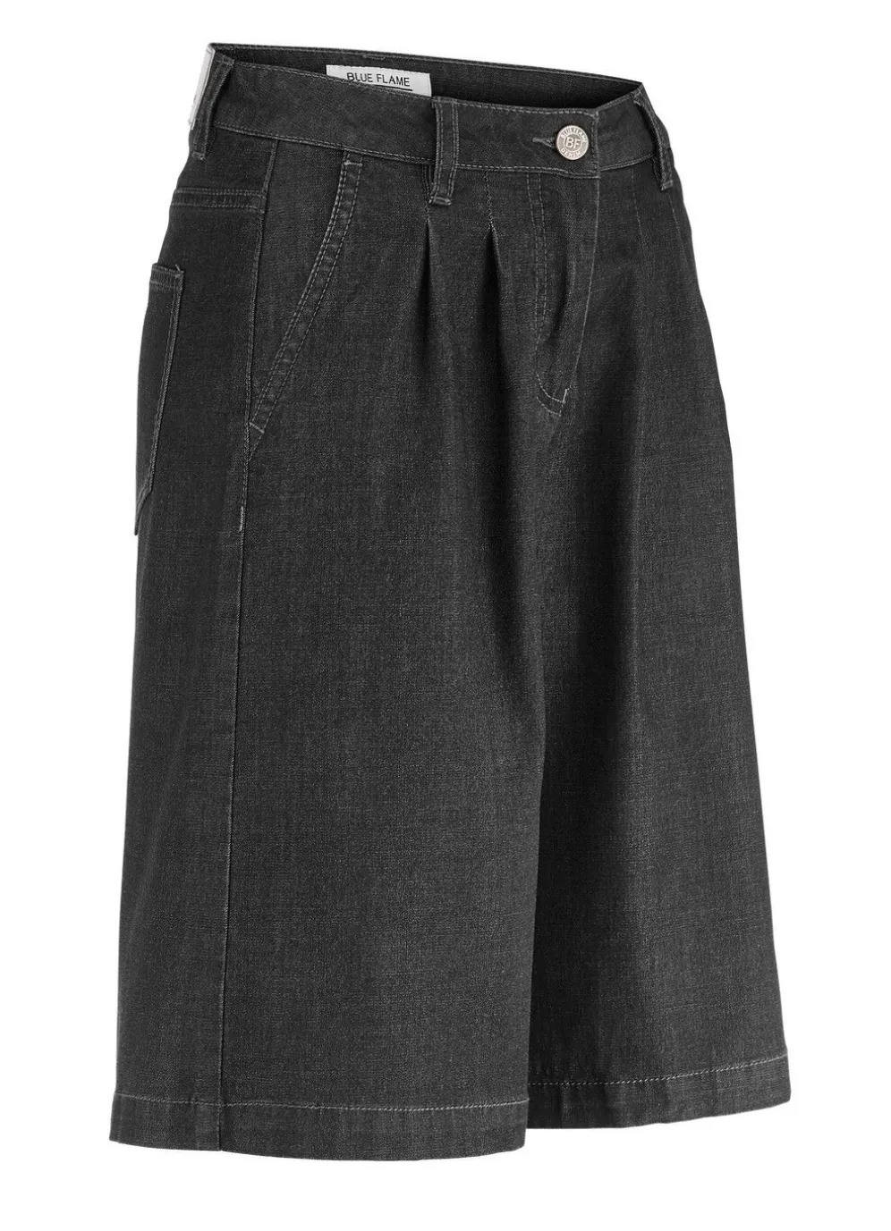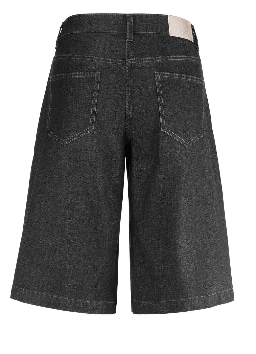 Attraktive Bermudas: elastischer Formbund, Gürtelschlaufen, Knopf- und Reißverschluss, Bundfalten, Seitentaschen, aufgesetzte Gesäßtaschen sowie figurformende Passe im Rückteil. Innenbeinlänge ca. 30 cm, Fußweite ab 64 cm.