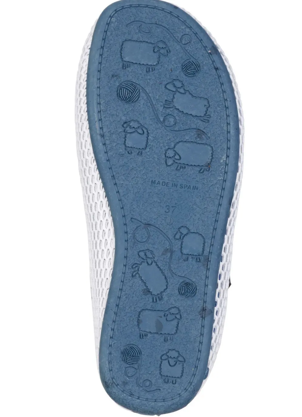 Hausschuhe aus farbig unterlegtem, weißem Mesh-Material mit grober Netz-Struktur: Weite H, herausnehmbares Textilfußbett, leichte Gummi-Laufsohle sowie 10 mm Keilabsatz