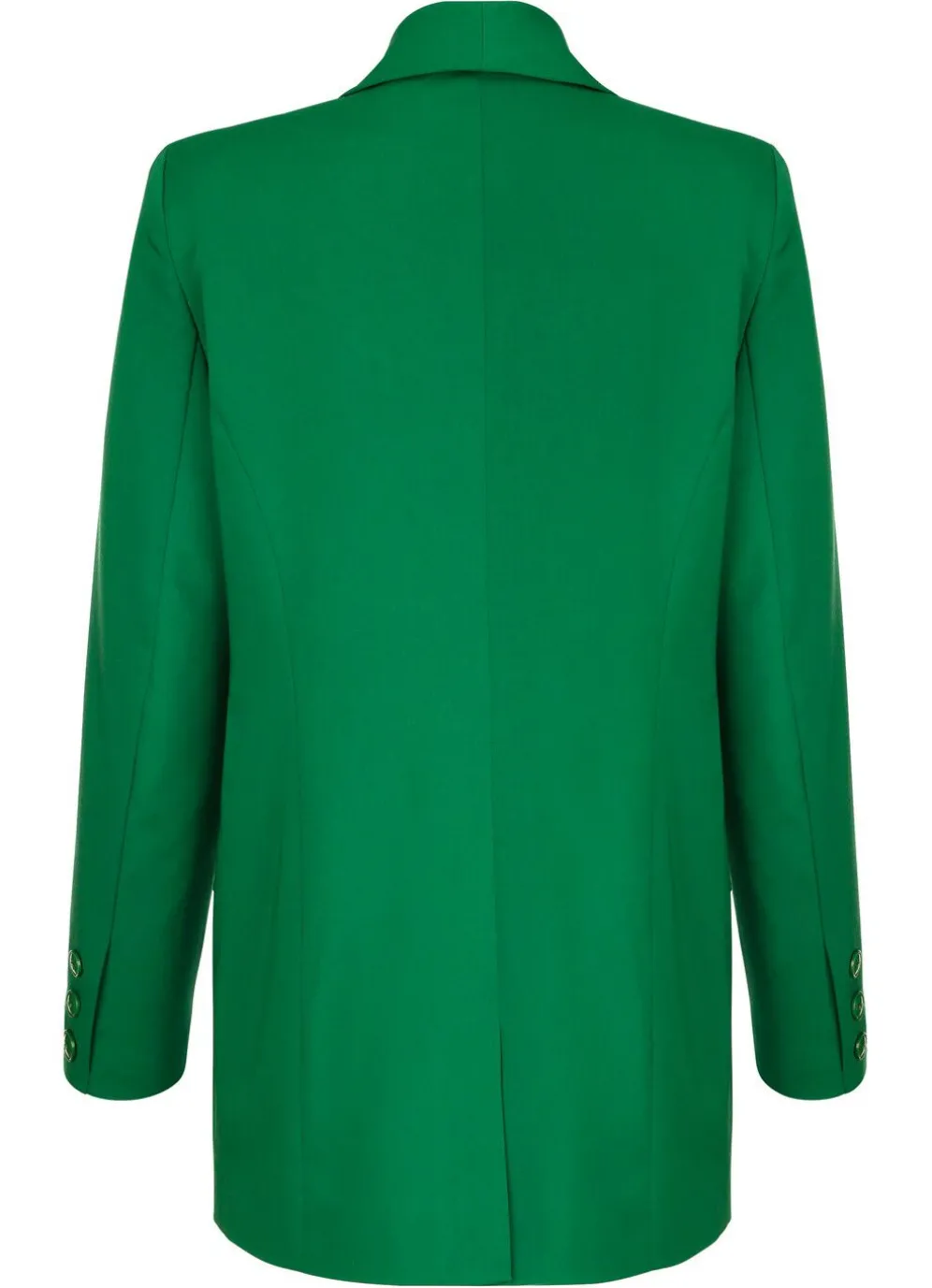 Blazer mit Schalkragen, leicht tailliert, 1-Knopf-Verschluss, Pattentaschen sowie Zierknöpfe an den Ärmelabschlüssen. Länge ca. 74 cm.