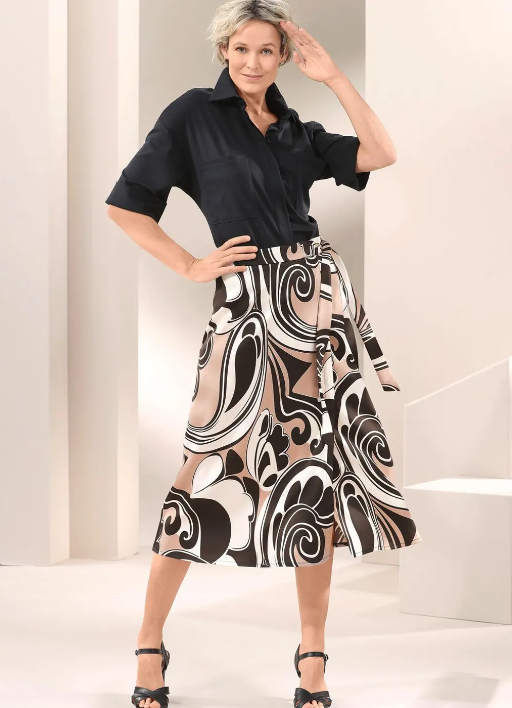 Angesagte Oversized-Hemdbluse von STILSCHMIEDE, mit zwei tollen Zierschmuckknöpfen am Hemdkragen, verdeckter Knopfleiste, zwei aufgesetzten Brusttaschen sowie 3/4-langen Ärmeln mit Umschlagmanschette.
