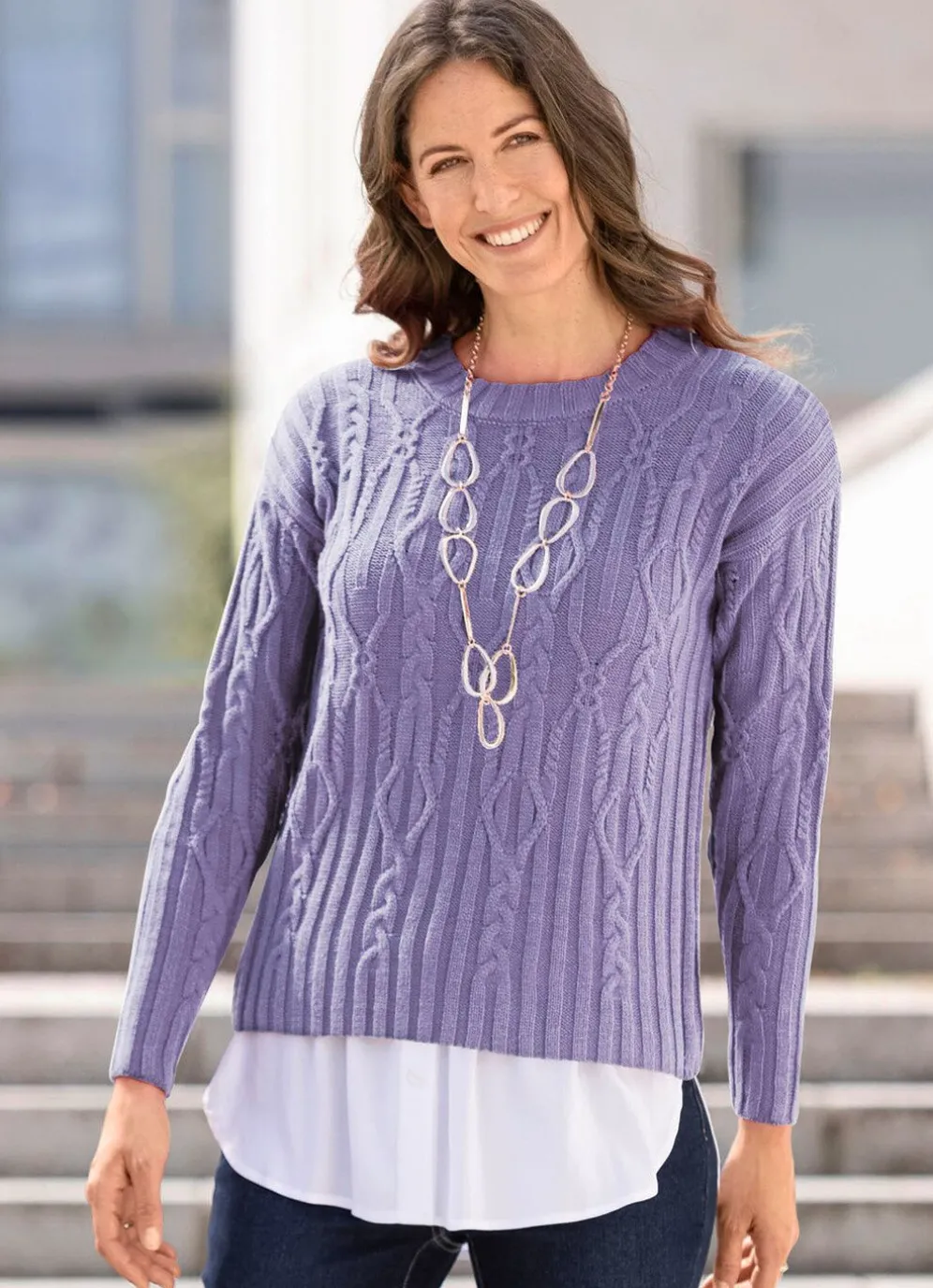 Blusensaum aus feinem Viskose-Jersey mit 2 dekorativen Knöpfen, Gummibund und gerundetem Saum. Die Qualität: 97% Viskose und 3% Elastan.