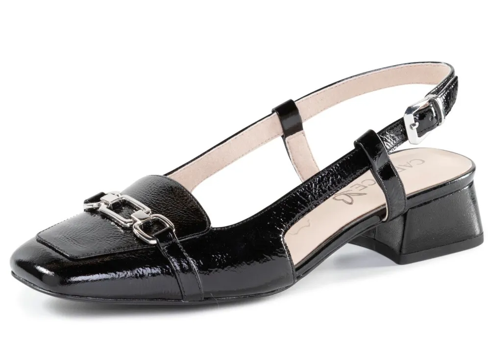 Aktueller Sling-Pumps aus edlem Knautschlackleder, mit Metallschmuck: Weite G, verstellbares Fersenriemchen mit verdecktem Gummizug, Futter, Lederdecksohle, Synthetik-Riffelsohle sowie lederbezogener 30 mm Absatz