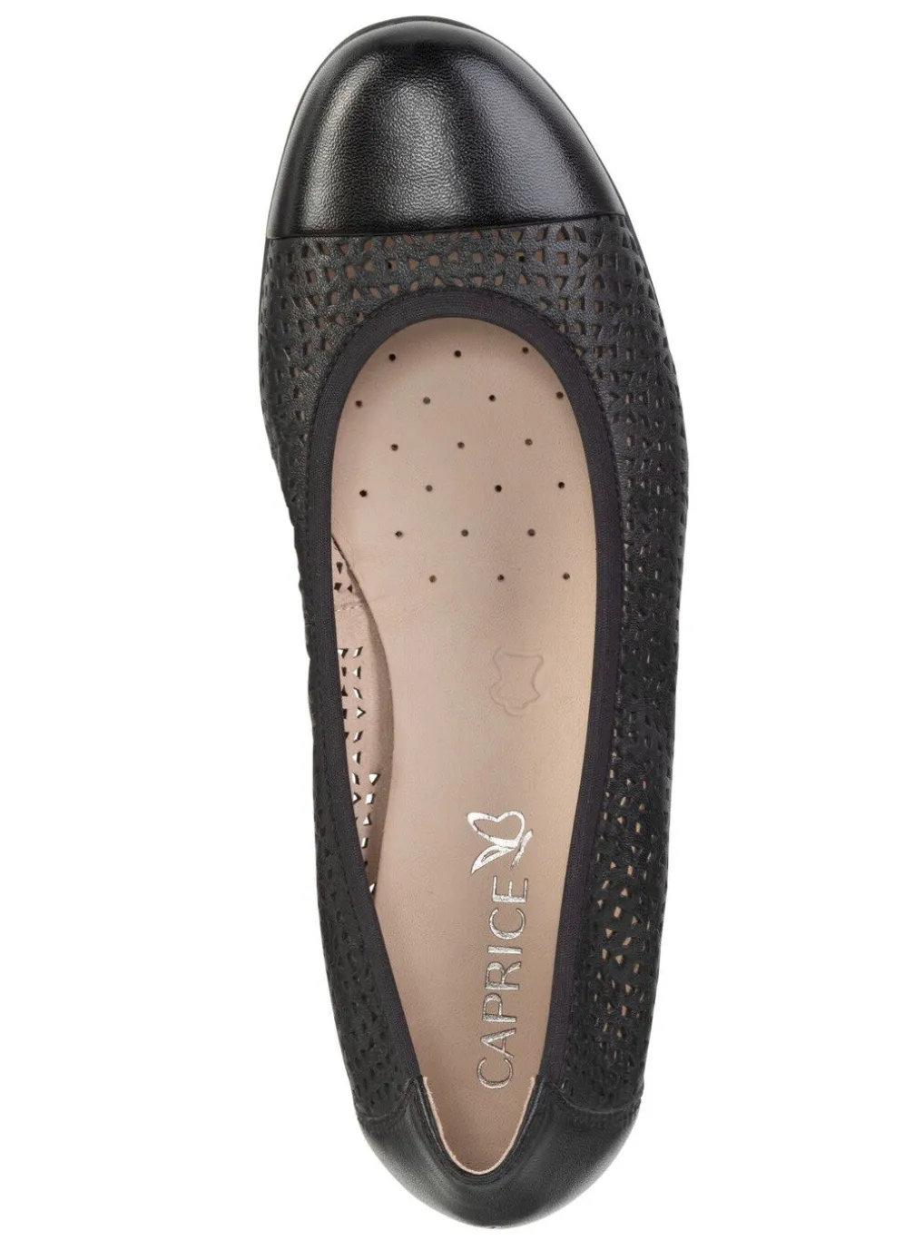 Luftig perforierte Ballerinas aus Nappaleder, mit Rundumgummizug: in Weite G, Futter, gepolsterte Lederdecksohle, superleichte TPR-Profilsohle sowie 10 mm Keilabsatz