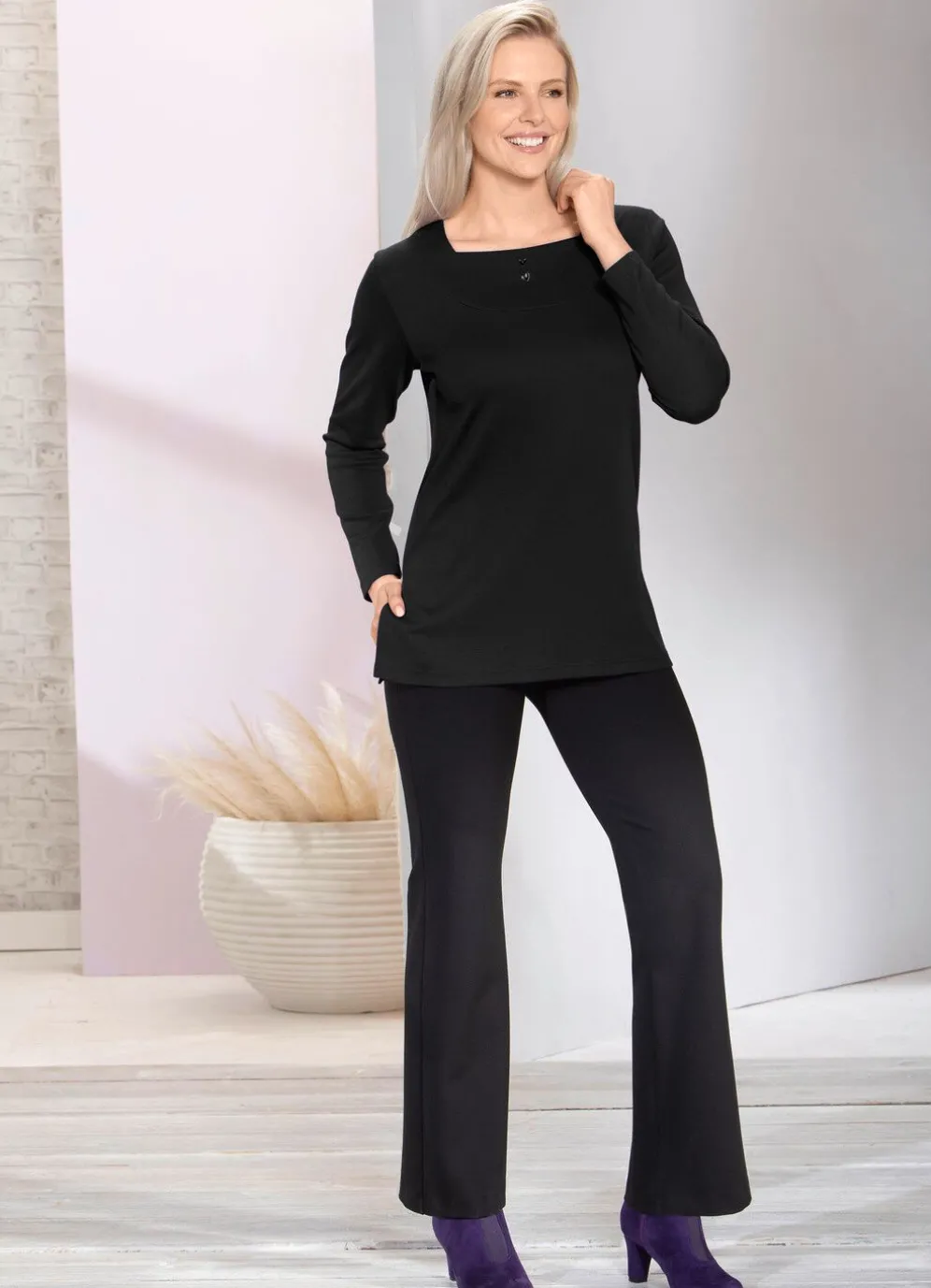Mit hohem Tragekomfort zeichnet sich dieses charmante Sweatshirt mit Blende und Zierknöpfen am Halsausschnitt sowie Seitenschlitzen aus.