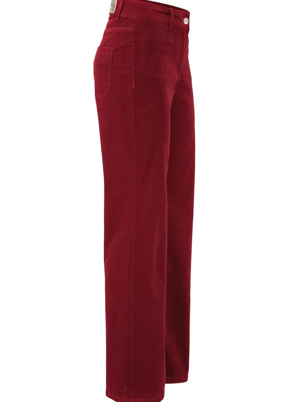 Fabelhafte Cordhose mit weitem Beinverlauf: elastischer Formbund, Gürtelschlaufen, Knopf- und Reißverschluss, modische, aufgesetzte Vordertaschen, Gesäßtaschen sowie figurformende Passe im Rückteil. Innenbeinlänge ca. 78 cm, Fußweite ab 50 cm.