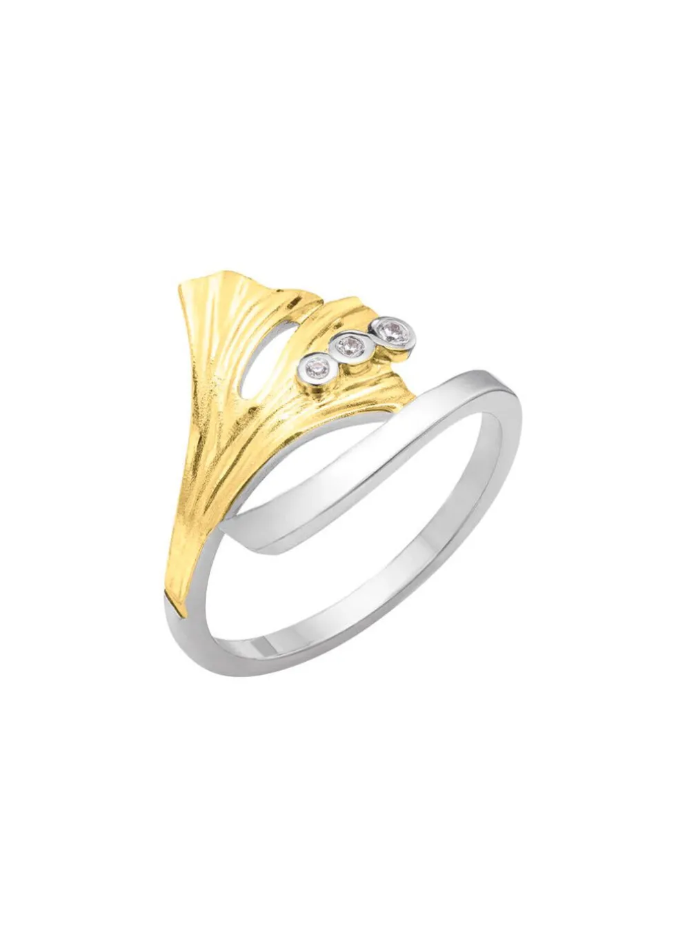 Damenring Ginkgoblatt in Bicolor mit synth. Zirkonia