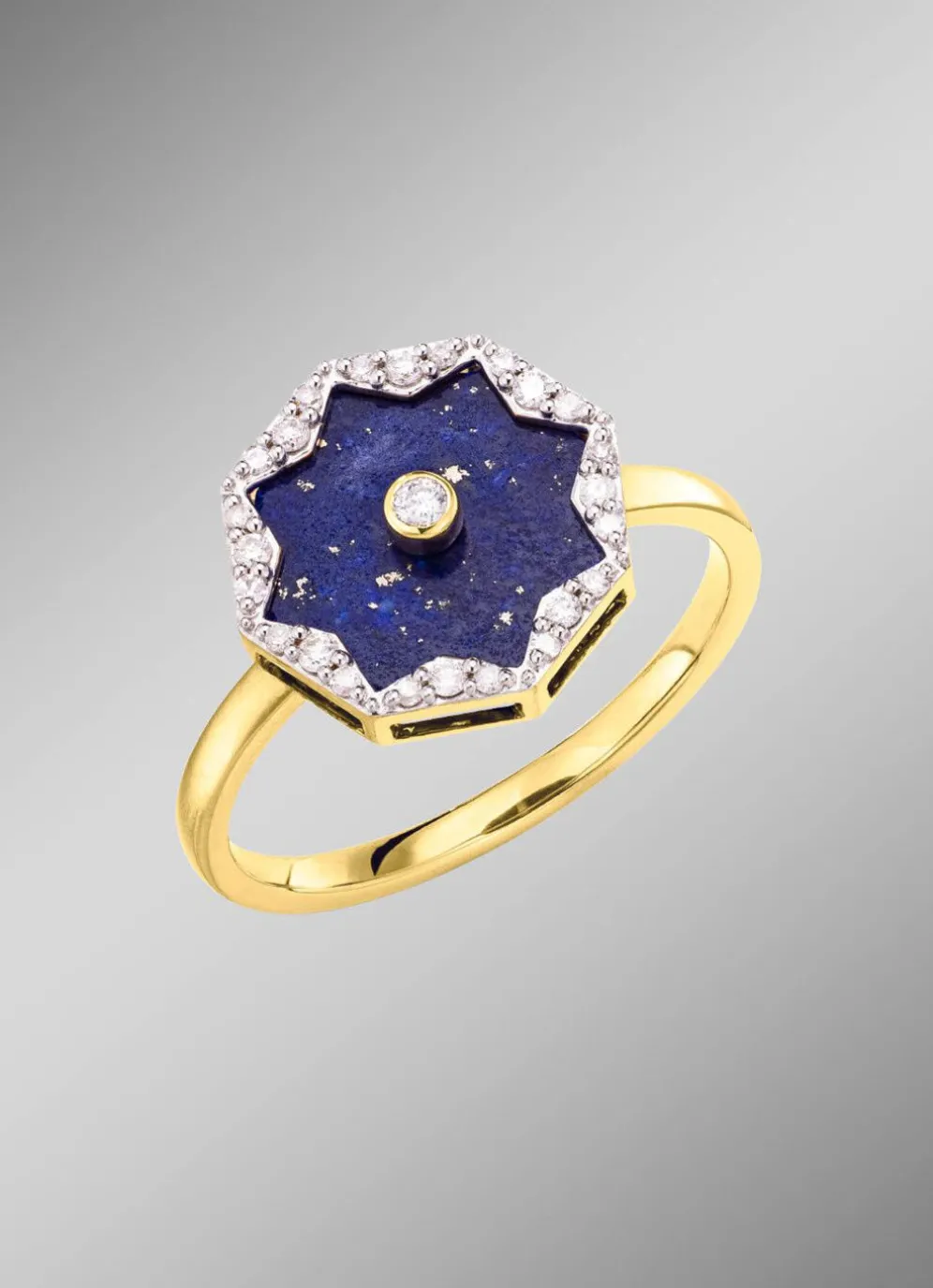 Damenring mit echt Lapislazuli, Brillanten und Diamanten