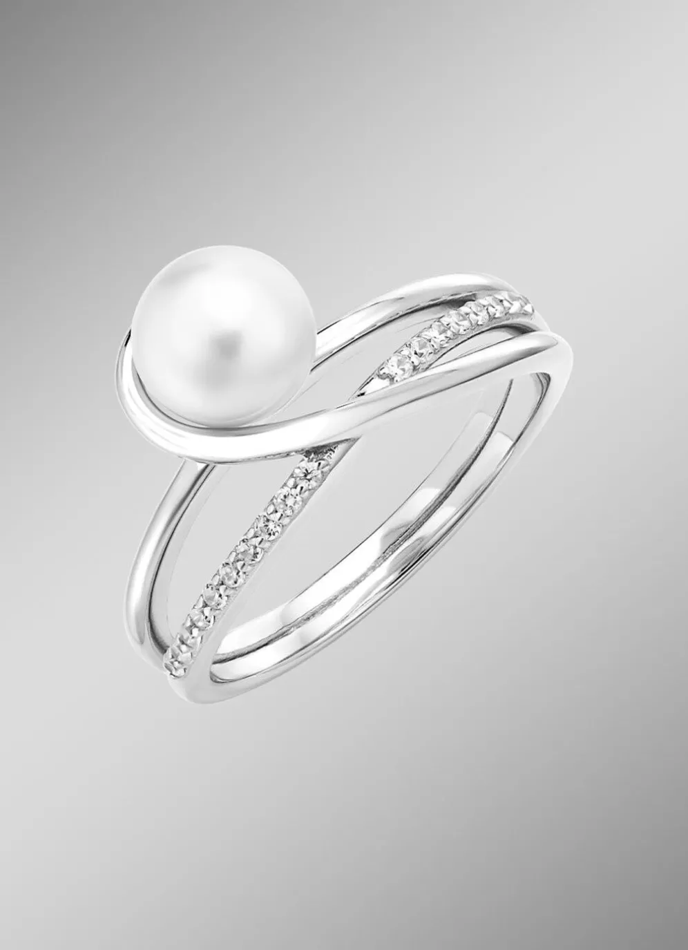 Damenring mit Süßwasser-Zuchtperle und synth. Zirkonia