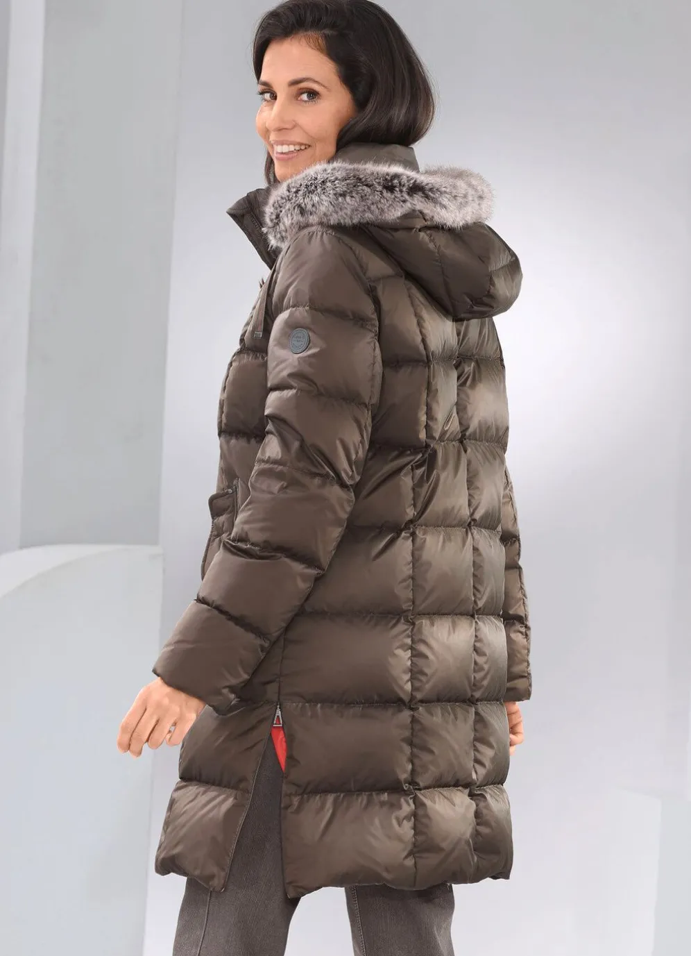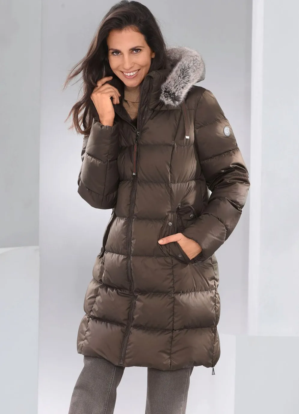 Die Qualität: Microfaser und Taftfutter jeweils aus 100% Polyester, Füllung aus 70% Daunen und 30% Federn, Kunstpelz aus 89% Polyacryl und 11% Polyester. Waschbar.