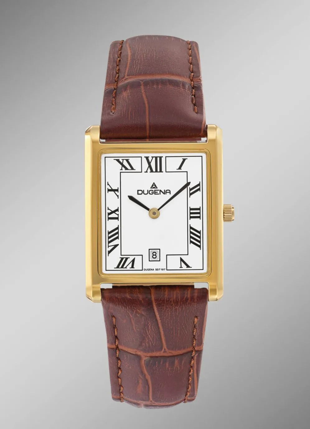 Dugena-Quartz-Herrenuhr mit Edelstahlgehäuse und Lederband