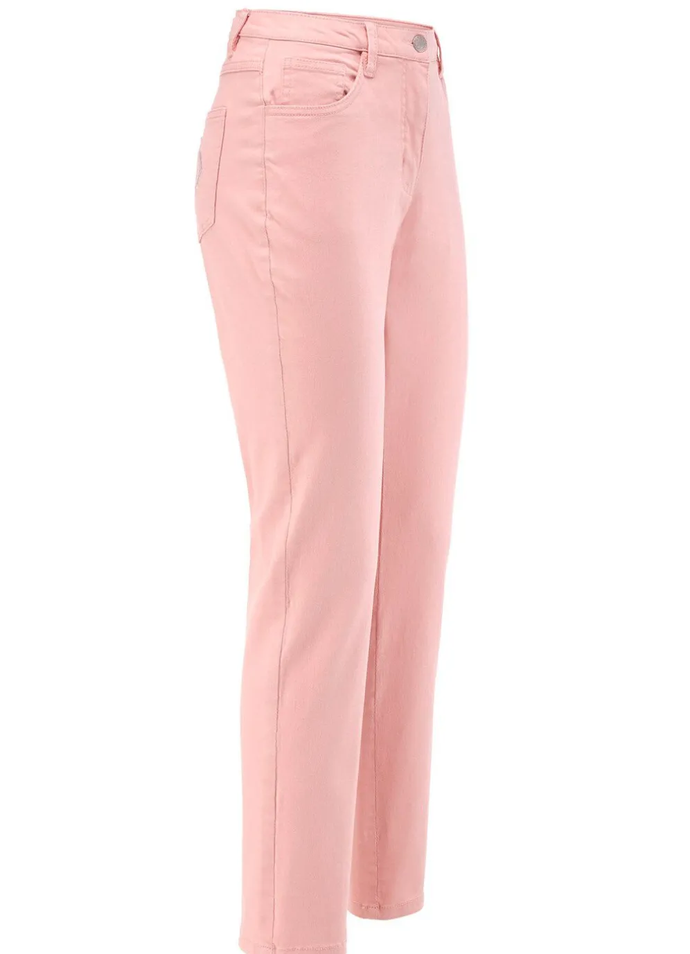 Für absolutes Wohlbefinden sorgt diese ansprechende Edeljeans in 7/8-Länge: 5-Pocket-Form, elastischer Formbund, Gürtelschlaufen, Knopf- und Reißverschluss sowie schöne, kontrastfarbene Stickerei, verziert mit Strasssteinen auf einer der aufgesetzten Gesäßtaschen, Jeanssattel sowie dezente Auswascheffekte. Innenbeinlänge ca. 68 cm, Fußweite ab 32 cm.