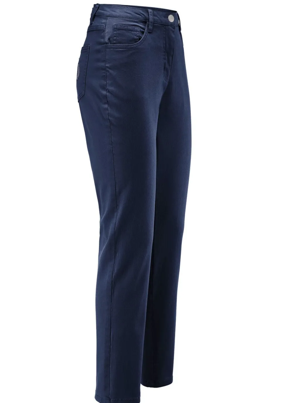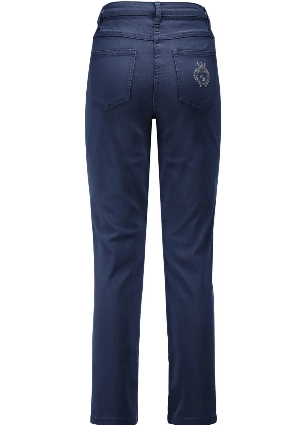 Für absolutes Wohlbefinden sorgt diese ansprechende Edeljeans in 7/8-Länge: 5-Pocket-Form, elastischer Formbund, Gürtelschlaufen, Knopf- und Reißverschluss sowie schöne, kontrastfarbene Stickerei, verziert mit Strasssteinen auf einer der aufgesetzten Gesäßtaschen, Jeanssattel sowie dezente Auswascheffekte. Innenbeinlänge ca. 68 cm, Fußweite ab 32 cm.