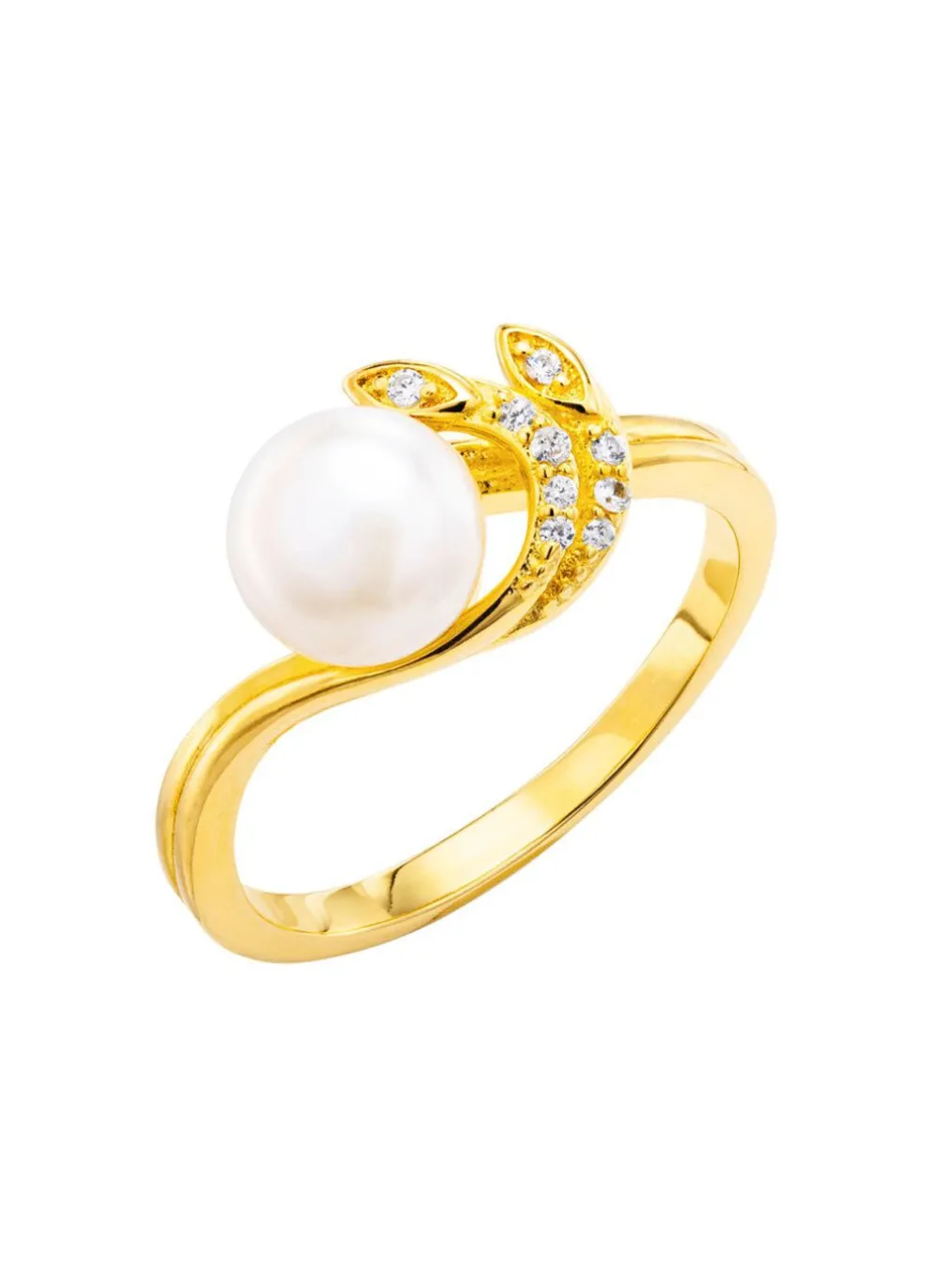 Edler Damenring mit Süßwasser-Zuchtperle und synth. Zirkonia