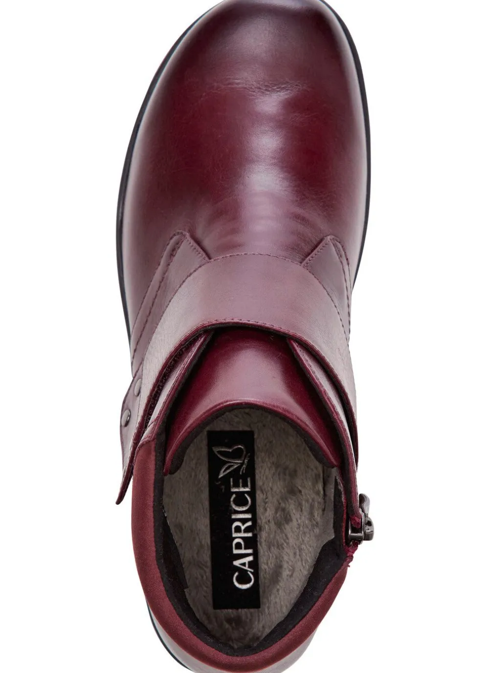 Wetterfeste Boots von ELENA EDEN aus Rind-Nappaleder mit Nubukbesatz: Weite H, mit Klimamembrane ausgestattet, seitlicher Reißverschluss und nietenbesetzte, verstellbare Klettspange mit verdecktem Gummizug, Textilfutter, gepolsterte Decksohle, leichte TPR-Profilsohle sowie 20 mm Keilabsatz