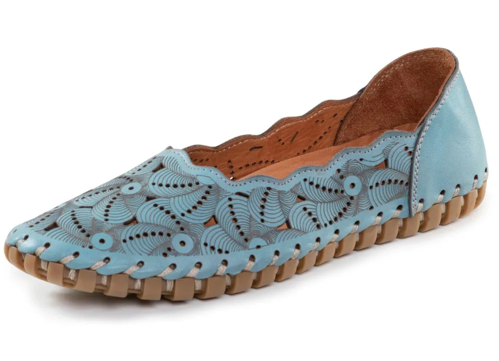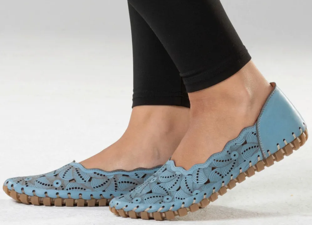 Luftig perforierter ELENA EDEN-Ballerina aus weichem Nappaleder, mit interessanter Prägung: Lederfutter, gepolsterte Lederdecksohle, superleichte TPU-Noppensohle sowie 10 mm Keilabsatz