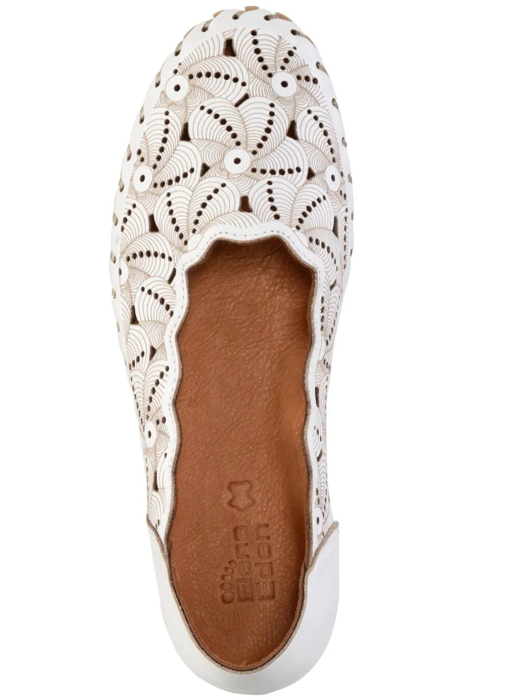 Luftig perforierter ELENA EDEN-Ballerina aus weichem Nappaleder, mit interessanter Prägung: Lederfutter, gepolsterte Lederdecksohle, superleichte TPU-Noppensohle sowie 10 mm Keilabsatz