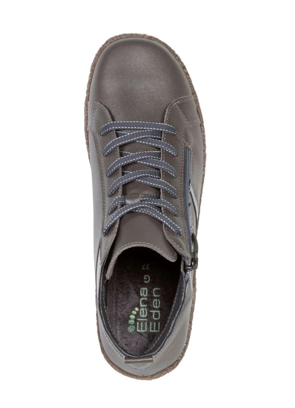 Boots von ELENA EDEN aus Nappaleder, mit geprägtem Einsatz, Schnürung und Seitenreißverschluss: Weite G, Futter, herausnehmbares Fußbett, leichte Synthetik-Profilsohle sowie 10 mm Keilabsatz. Schafthöhe ca. 8 cm