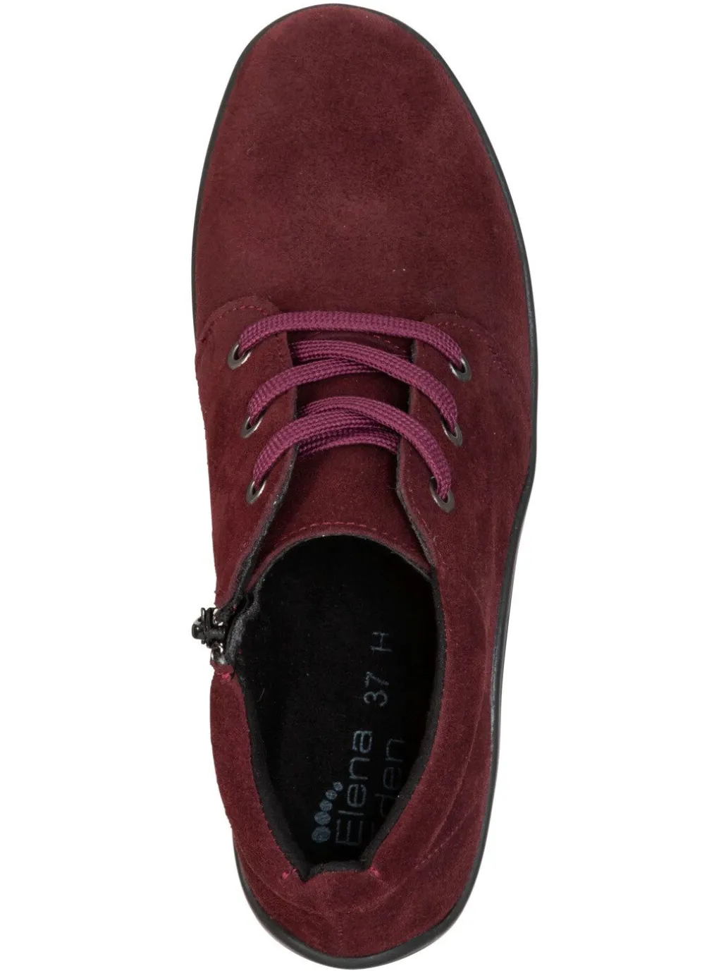 Boots von ELENA EDEN aus weichem Veloursleder mit Schnürung und Innenreißverschluss: Weite H, Textilfutter, herausnehmbares Fußbett, leichte PU-Profilsohle sowie 20 mm Keilabsatz. Schafthöhe ca. 8 cm