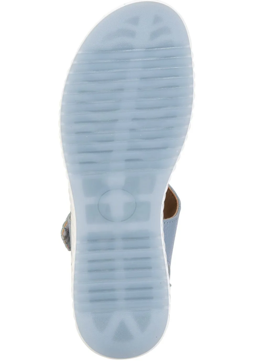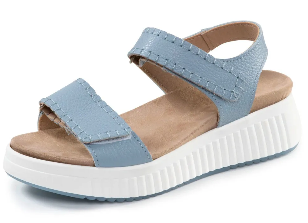 Sandalen von ELENA EDEN aus genarbtem Nappa- oder Nubukleder, mit zwei verstellbaren Klettspangen und Ziernähten: Weite H, Futter, herausnehmbares Fußbett sowie geriffelte 25 mm TR-Plateausohle mit 40 mm Keilabsatz