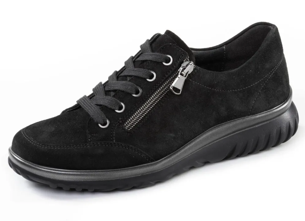 Edle Schnürschuhe von ELENA EDEN, aus bestem Veloursleder, mit seitlichem Reißverschluss: Weite H, Lederfutter, herausnehmbares Lederfußbett, leichte PU-Luftpolster-Profilsohle sowie 20 mm Keilabsatz