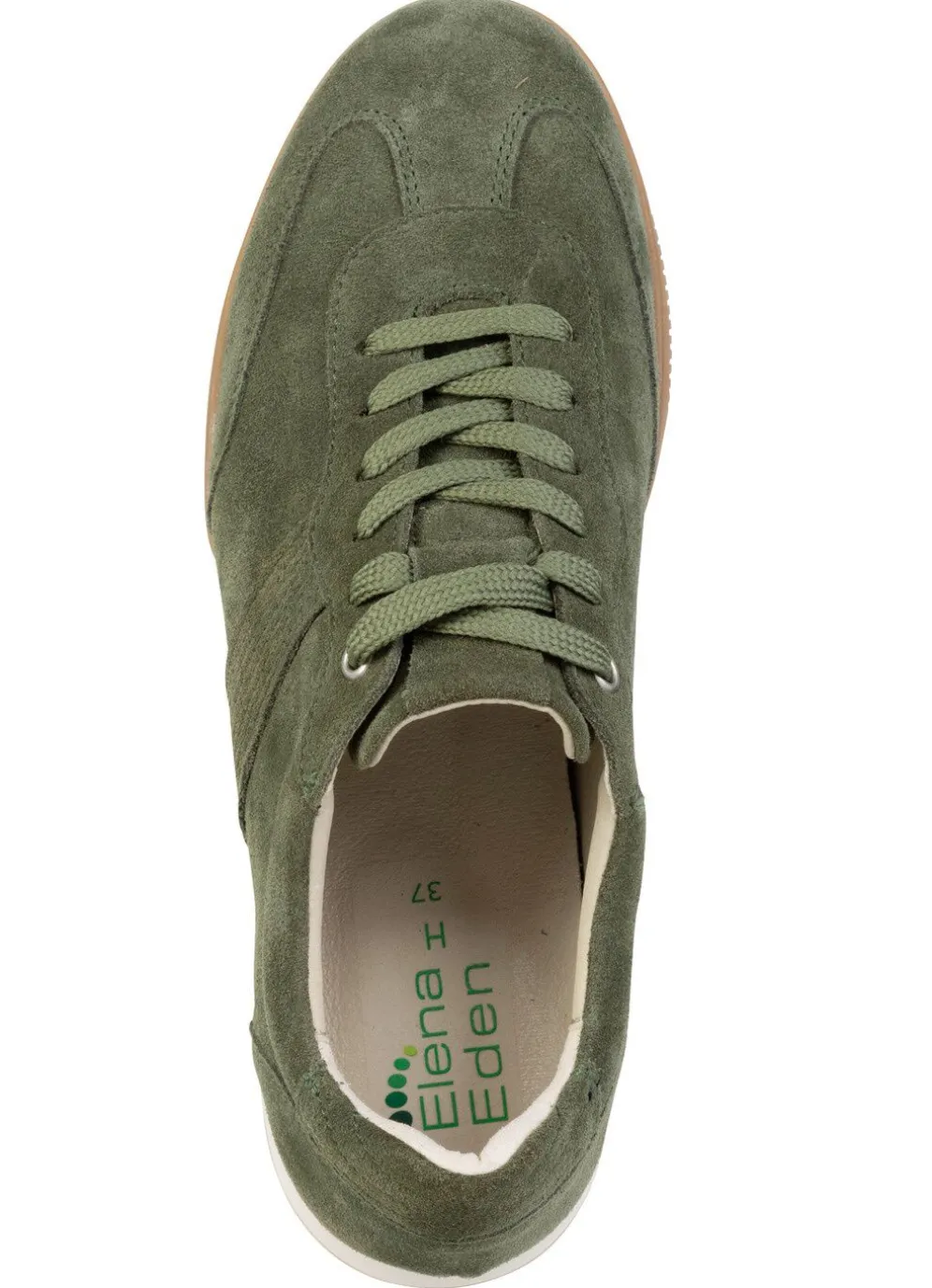 Angesagte Sneaker von ELENA EDEN aus Veloursleder, mit Zier-Naht: Weite H, Schnürung, Futter, herausnehmbares Fußbett, leichte TR-Riffelsohle sowie 15 mm Keilabsatz