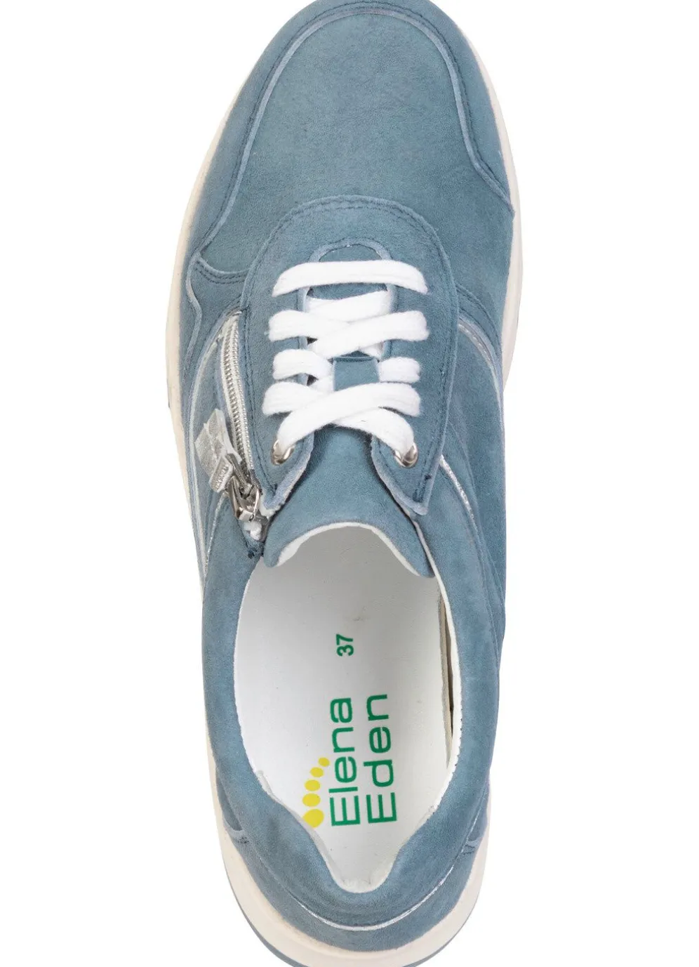 Sneaker von ELENA EDEN aus Veloursleder mit Schnürung: Weite H, seitlicher Reißverschluss, Lederfutter, herausnehmbares Lederfußbett, leichte TR-Laufsohle sowie 20 mm Keilabsatz