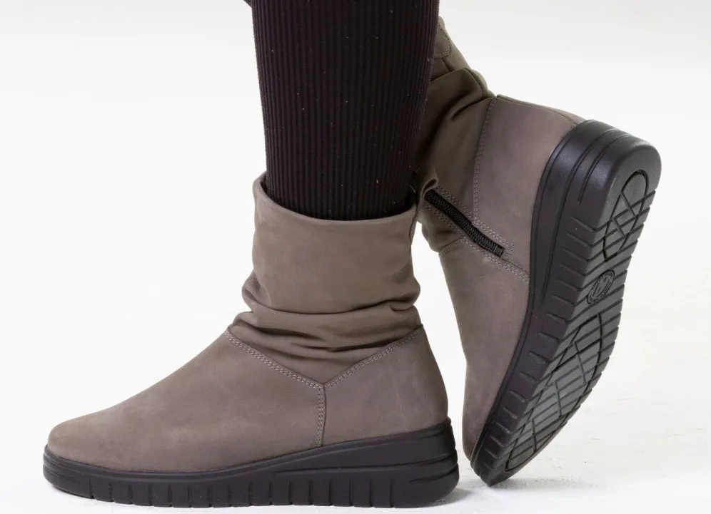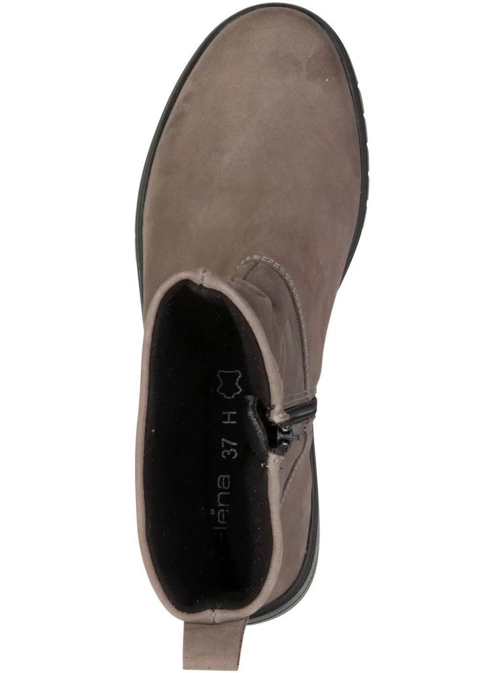 Stiefeletten von ELENA EDEN, aus Nubuk- oder Nappaleder mit Raffung: Weite H, Innenreißverschluss, Textilfutter, herausnehmbares Fußbett, leichte PU-Profilsohle sowie 20 mm Keilabsatz. Schafthöhe ca. 16 cm
