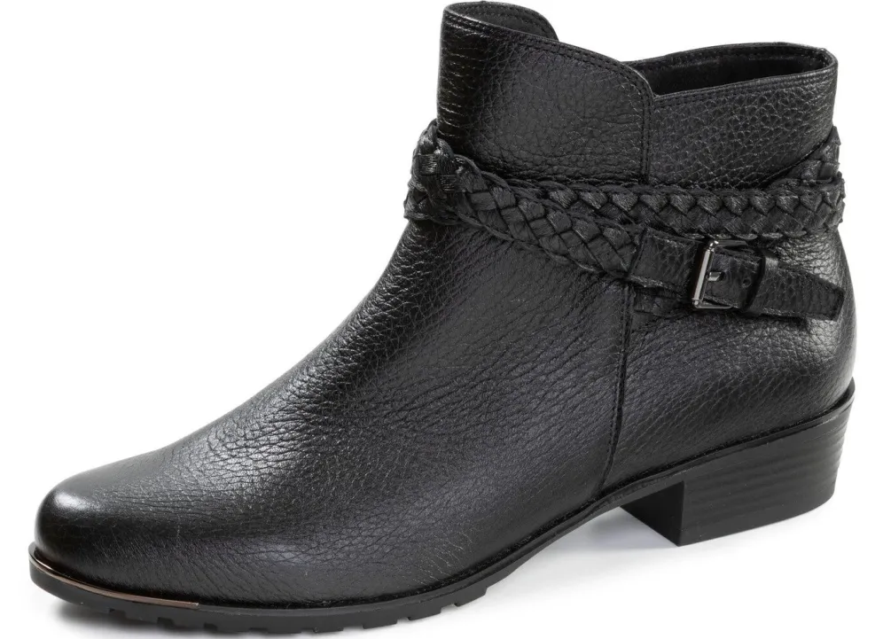Stiefeletten von ELENA EDEN, aus weichem Hirsch-Nappaleder, mit praktischem Innenreißverschluss und dekorativer Flecht-Spange: Weite G, wärmendes Textilfutter, gepolsterte Decksohle, leichte TPR-Laufsohle sowie 30 mm Absatz. Schafthöhe ca. 11 cm