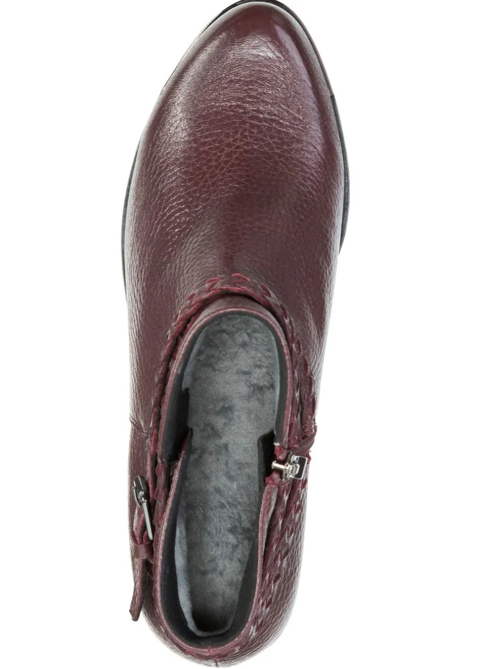 Stiefeletten von ELENA EDEN, aus weichem Hirsch-Nappaleder, mit praktischem Innenreißverschluss und dekorativer Flecht-Spange: Weite G, wärmendes Textilfutter, gepolsterte Decksohle, leichte TPR-Laufsohle sowie 30 mm Absatz. Schafthöhe ca. 11 cm