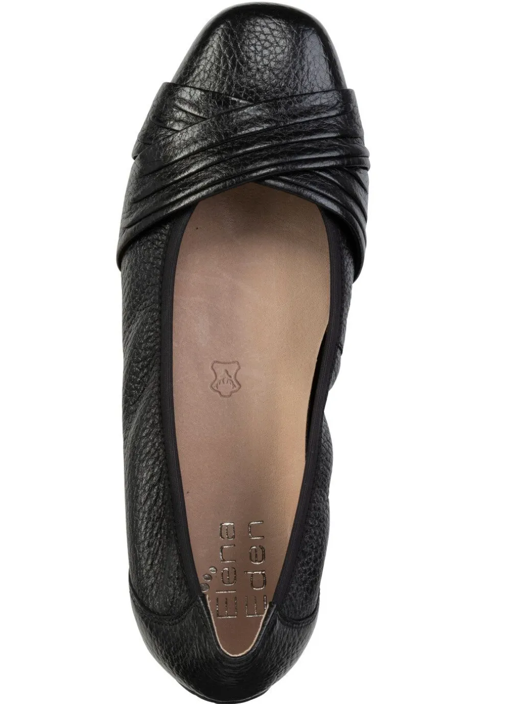 Edle Ballerinas von ELENA EDEN aus weichem, genarbtem Hirsch-Nappaleder, mit Rundumgummizug und dekorativer Spange: Weite G, herausnehmbares Lederfußbett, leichte TPR-Laufsohle sowie 15 mm Keilabsatz