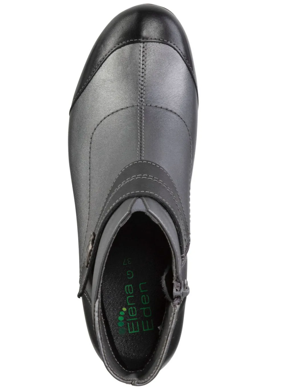 Stiefeletten von ELENA EDEN, aus teilweise glänzend geprägtem Nappaleder, mit Gummizug und Innenreißverschluss: Weite G, dekorative Spange, Textilfutter, herausnehmbares Fußbett, leichte TR-Riffelsohle sowie 35 mm Absatz. Schafthöhe ca. 12 cm