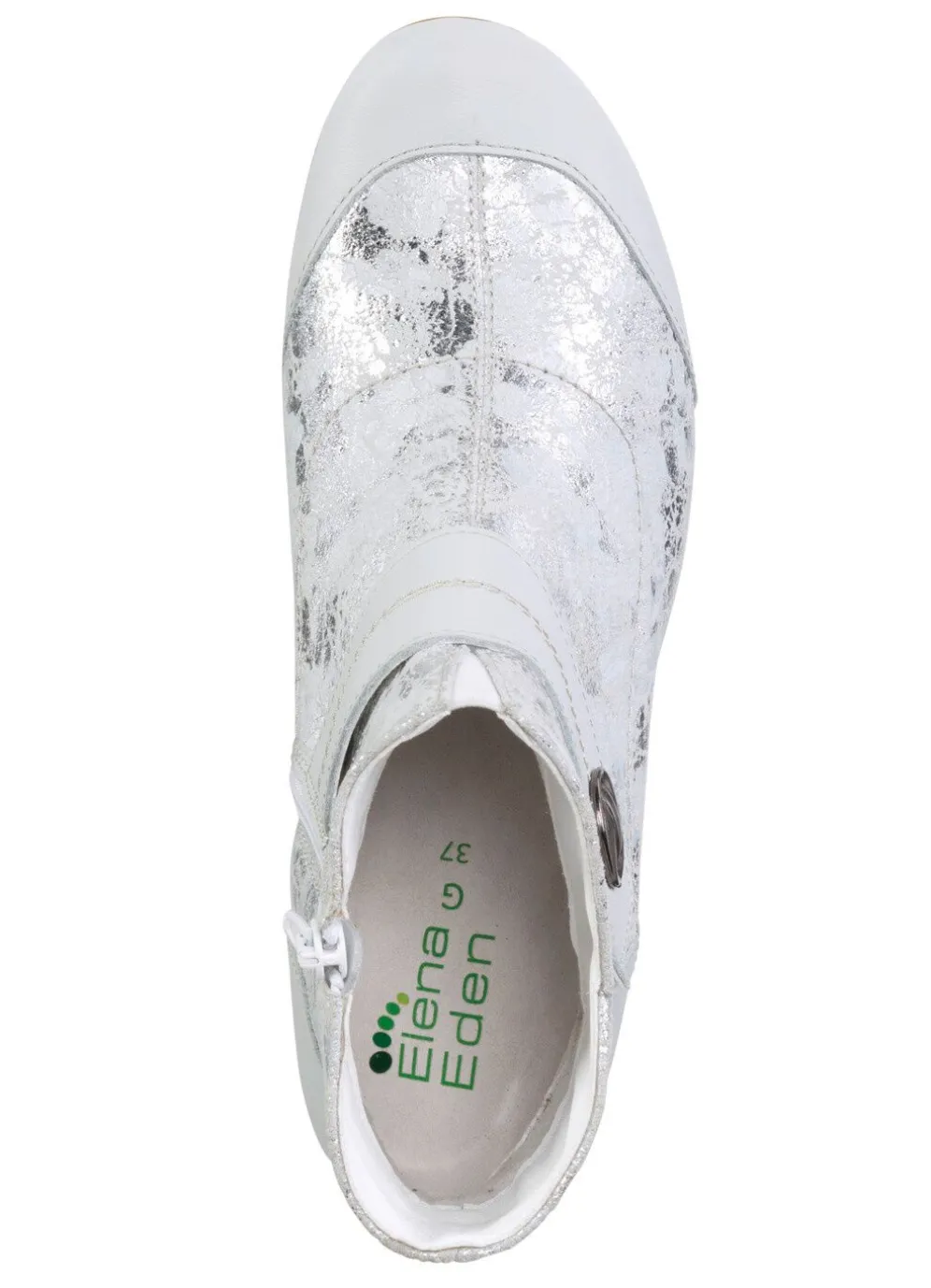 Stiefeletten von ELENA EDEN, aus teilweise glänzend geprägtem Nappaleder, mit Gummizug und Innenreißverschluss: Weite G, dekorative Spange, Textilfutter, herausnehmbares Fußbett, leichte TR-Riffelsohle sowie 35 mm Absatz. Schafthöhe ca. 12 cm