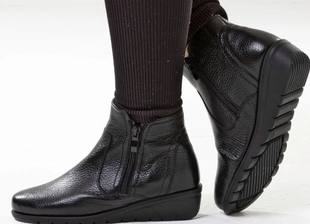 Stiefeletten von ELENA EDEN, aus weichem Hirsch-Nappaleder, mit zwei Seiten-Reißverschlüssen und verdecktem Gummizug am Schaft: Weite G, wärmendes Textilfutter, gepolsterte Decksohle, leichte TPR-Laufsohle sowie 30 mm Keilabsatz. Schafthöhe ca. 11 cm