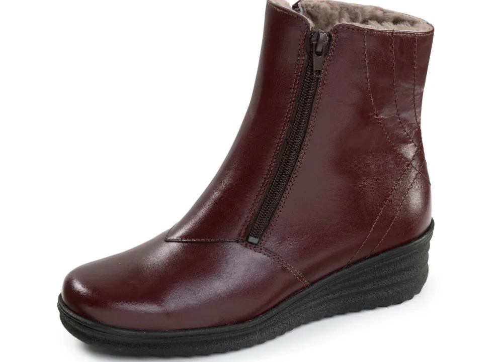 Stiefeletten von ELENA EDEN aus bestem Nappaleder, mit zwei praktischen Seitenreißverschlüssen: in Weite H, echtes, molliges Lammfellfutter, warme Wolldecksohle, leichte Synthetik-Profilsohle, 30 mm Keilabsatz. Schafthöhe ca. 15 cm