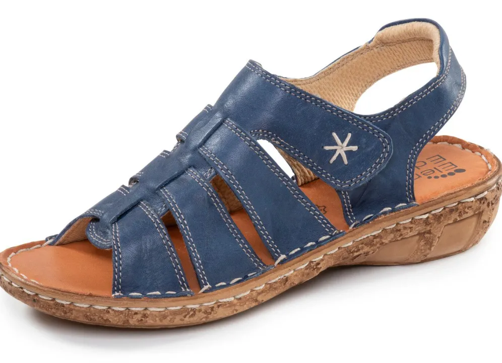 Sandalen von ELENA EDEN aus Nappaleder mit dezenter Knitter-Struktur: Weite G, verstellbare Klettspange, seitlicher Gummizug, Textilfutter, gepolsterte Lederdecksohle, leichte PU-Laufsohle sowie 20 mm Keilabsatz