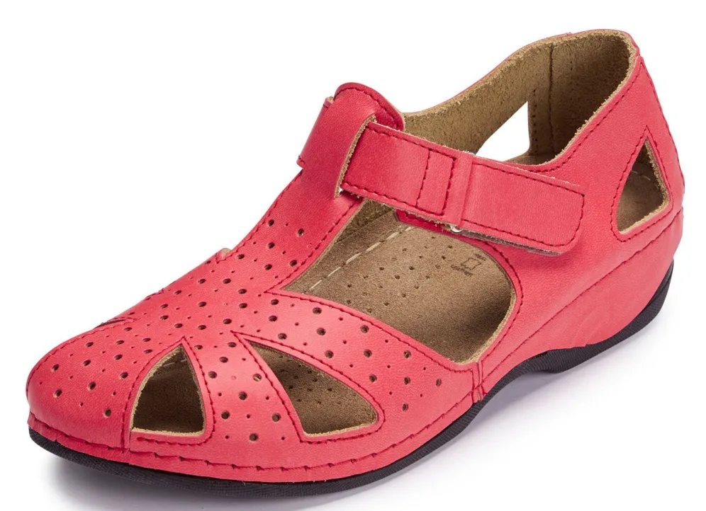 Sandalen von ELENA EDEN, aus Nappaleder, mit luftiger Perforation: in Weite H, verstellbare Klettspange, gepolstertes Lederfußbett mit Pelotte und Gelenkstütze, leichte PU-Riffelsohle, 30 mm Absatz