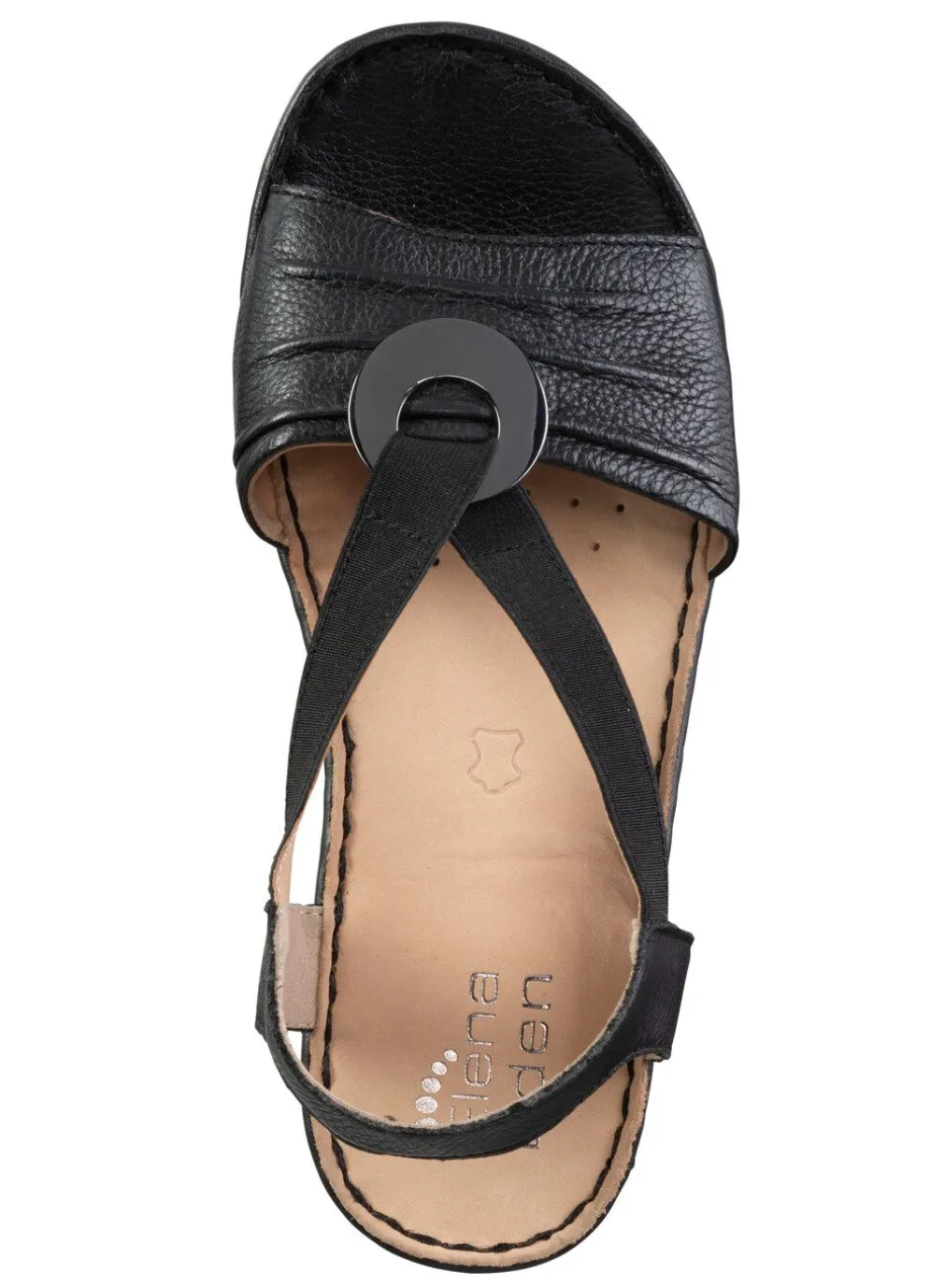 Sandalen von ELENA EDEN, aus Nappaleder mit praktischer Elastik-Bandage und edlem Metallschmuck: Weite H, Lederfutter, gepolsterte Lederdecksohle, leichte TPR-Laufsohle sowie 20 mm Absatz