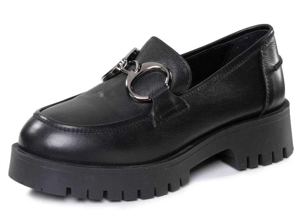 Angesagter ELENA EDEN-Loafer aus teilweise schattiertem Nappaleder, mit Metallschmuck: Lederfutter, herausnehmbares Lederfußbett, 25 mm Plateau-Profilsohle mit 40 mm Absatz