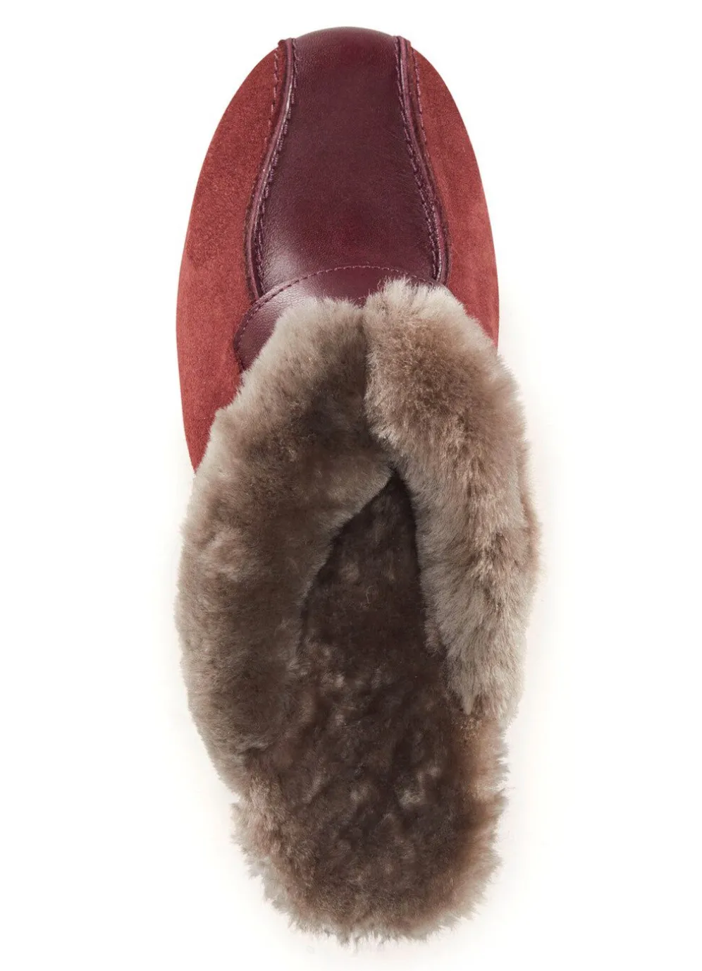 ELENA EDEN-Pantoffel aus Rindleder, mit Kragen sowie Futter und Fußbettbezug aus echtem, gewachsenem Lammfell. Leichte PU-Laufsohle sowie 30 mm Keilabsatz