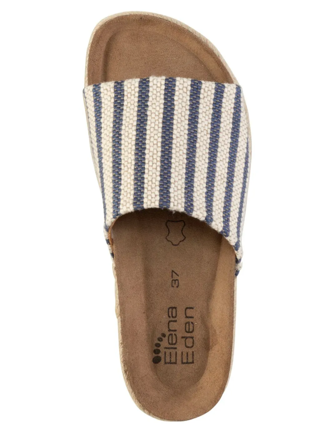 ELENA EDEN-Pantolette aus grob gewebtem Textilmaterial: Weite H, Futter, gepolstertes Lederfußbett, leichte EVA-Profilsohle sowie 10 mm Keilabsatz mit Kordelbezug
