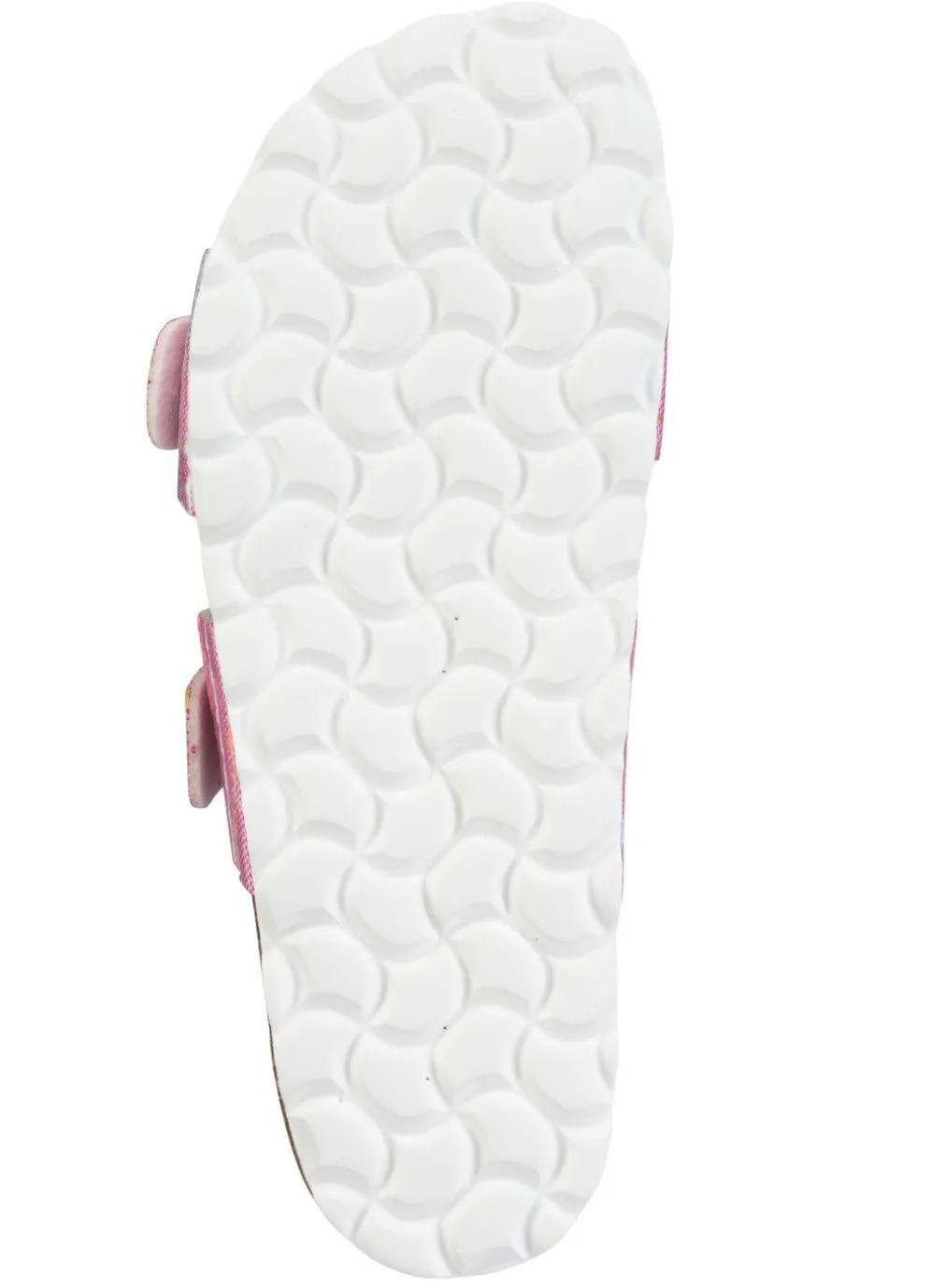 ELENA EDEN-Pantolette aus interessant dessiniertem Synthetik, mit zwei verstellbaren Spangen: Weite H, Futter, gepolstertes Lederfußbett, leichte EVA-Profilsohle sowie 10 mm Keilabsatz