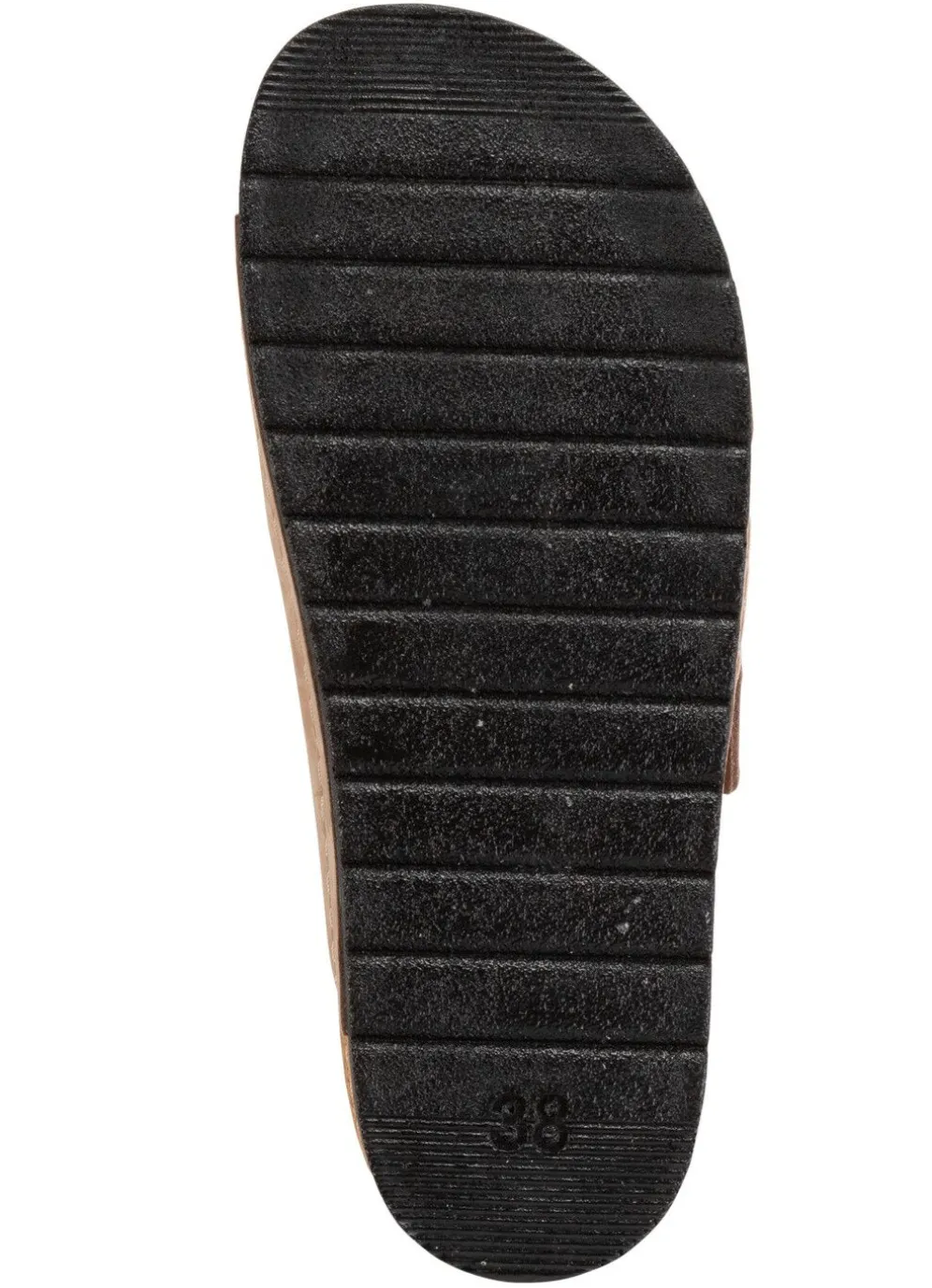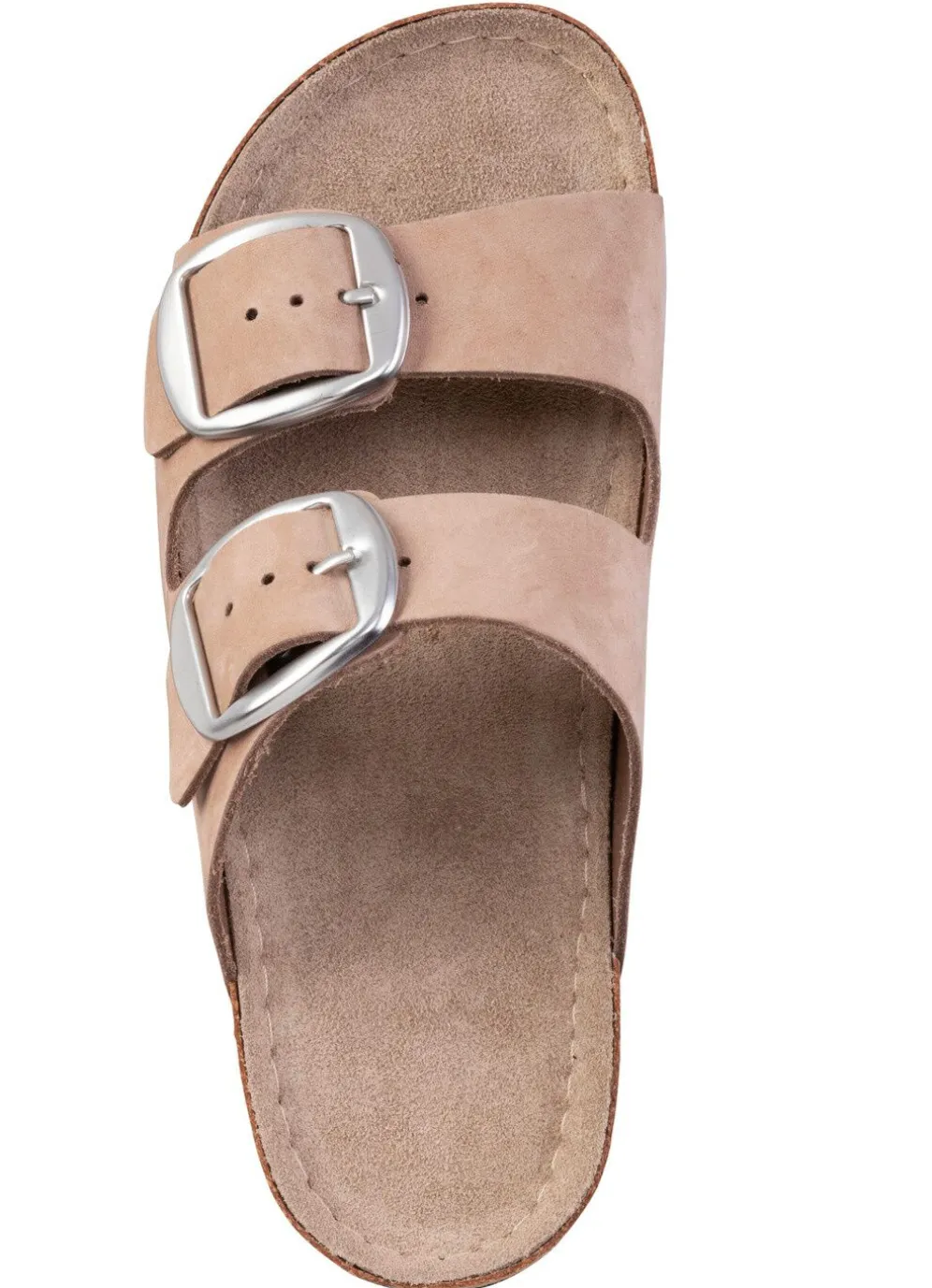 ELENA EDEN-Pantolette aus Nubukleder mit zwei verstellbaren Schließen: Weite G, gepolstertes Lederfußbett, leichte PU-Laufsohle sowie 20 mm Keilabsatz