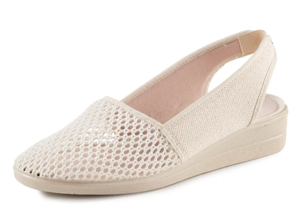 ELENA EDEN-Sandale aus luftigem Meshmaterial und gepolstertem Textil mit dezentem Metallicschimmer: Fersen-Gummizug, Textilfutter, gepolsterte Decksohle, leichte Gummi-Riffelsohle sowie 25 mm Keilabsatz