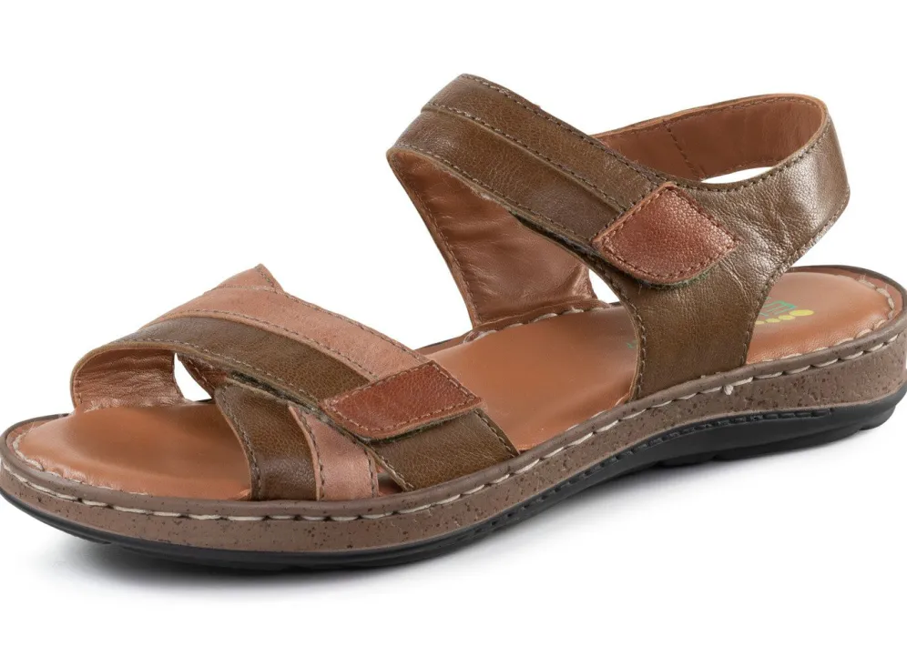 ELENA EDEN-Sandale aus Nappaleder, mit Kontrastbesätzen: Weite G, zwei verstellbare Klettspangen, Lederfutter, weich gepolsterte Lederdecksohle, leichte PU-Laufsohle sowie 15 mm Keilabsatz